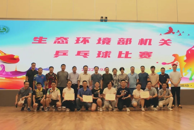 2022年生态环境部机关乒乓球赛于9月7日落下帷幕。部机关相关部门、服务中心派出20支代表队近90人参赛,生态环境部负责同志、相关司局负责同志带队出征。赛场上对阵激烈、精彩纷呈,以球会友、以球联谊,现场呐喊声加油声此起彼伏、气氛热烈,展现了干部职工饱满的精神状态和昂扬的斗志,达到了强身健体、锻炼队伍、凝心聚力的良好成效,营造了团结友爱、积极向上的机关氛围。
