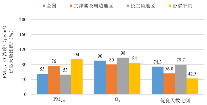 长三角地区41个城市1月平均优良天数比例为79.7%,同比上升14.8个百分点;平均重度及以上污染天数比例为2.1%,同比上升1.2个百分点;PM2.5平均浓度为53微克/立方米,同比下降15.9%;O3平均浓度为98微克/立方米,同比上升14.0%。重度及以上污染天数较多的城市为亳州、阜阳、徐州、宿迁等城市。