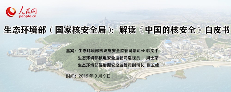 各位网友大家好,欢迎关注人民网视频访谈。9月3日国务院新闻办公室发表《中国的核安全》白皮书,今天访谈间邀请到三位嘉宾对这份白皮书的有关情况进行介绍和解读。他们分别是:生态环境部核设施安全监管司副司长韩文平,您好,韩司长。
